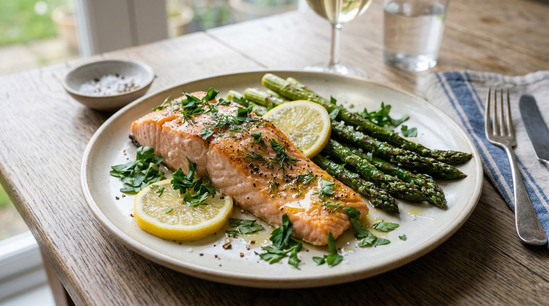 4. Plato Fuerte: Salmón al Horno con Espárragos
