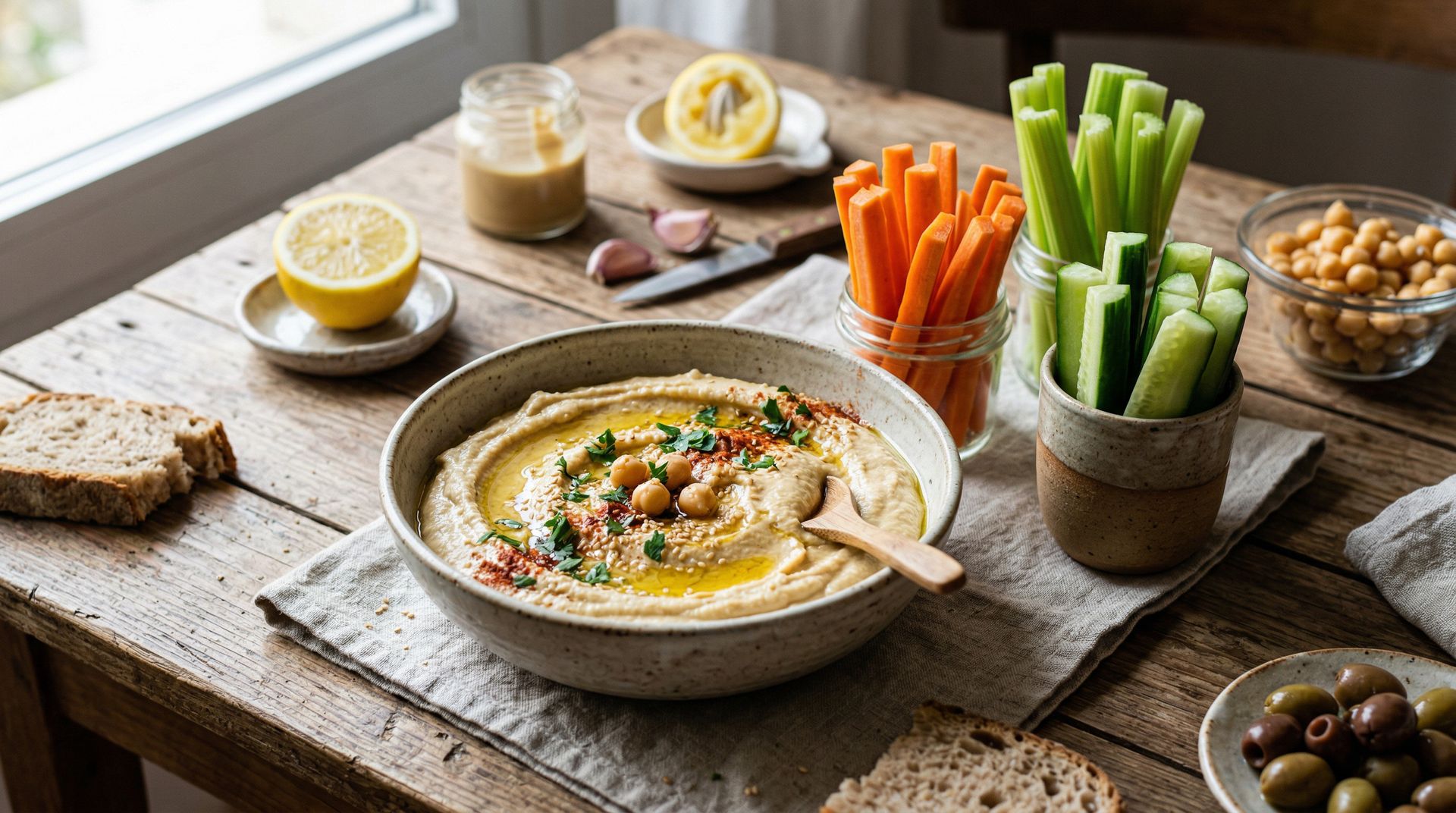 6. Snack Tarde: Hummus Casero con Bastones
